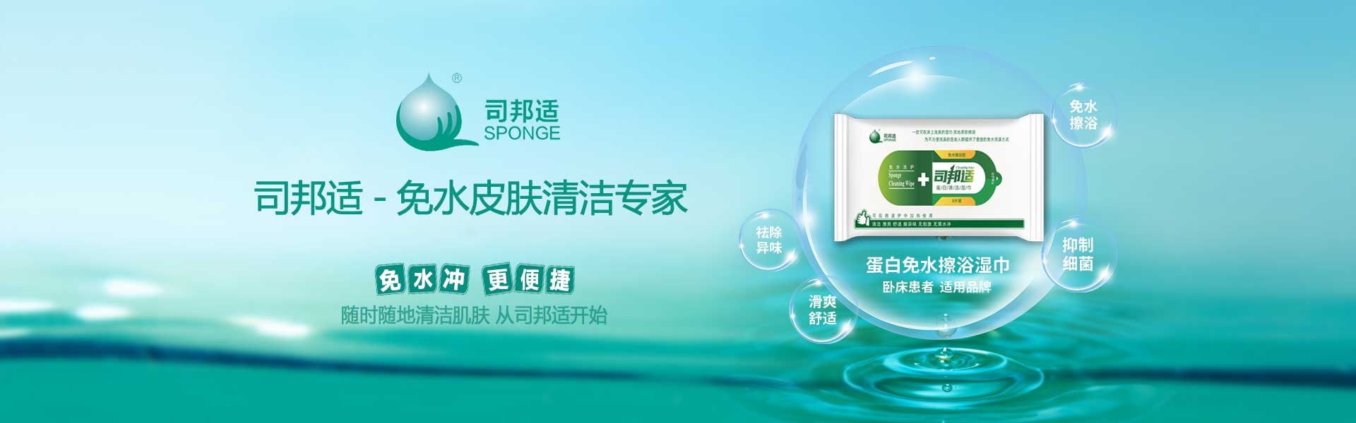 ? ? ? ?本公司研發的司邦適蛋白表面活性因子,不僅對人體皮膚及粘膜沒有刺激,同時具有對皮膚很強的清潔能力;可以祛除人體皮膚上的異味,并且具有較強的抑菌功效。使用后無需用水沖洗皮膚仍感到舒適爽滑;基于上述原因我們研發的司邦適免水清潔系列產品。主要適用于各種主觀或者客觀上不方便全身或局部皮膚清潔的人群。